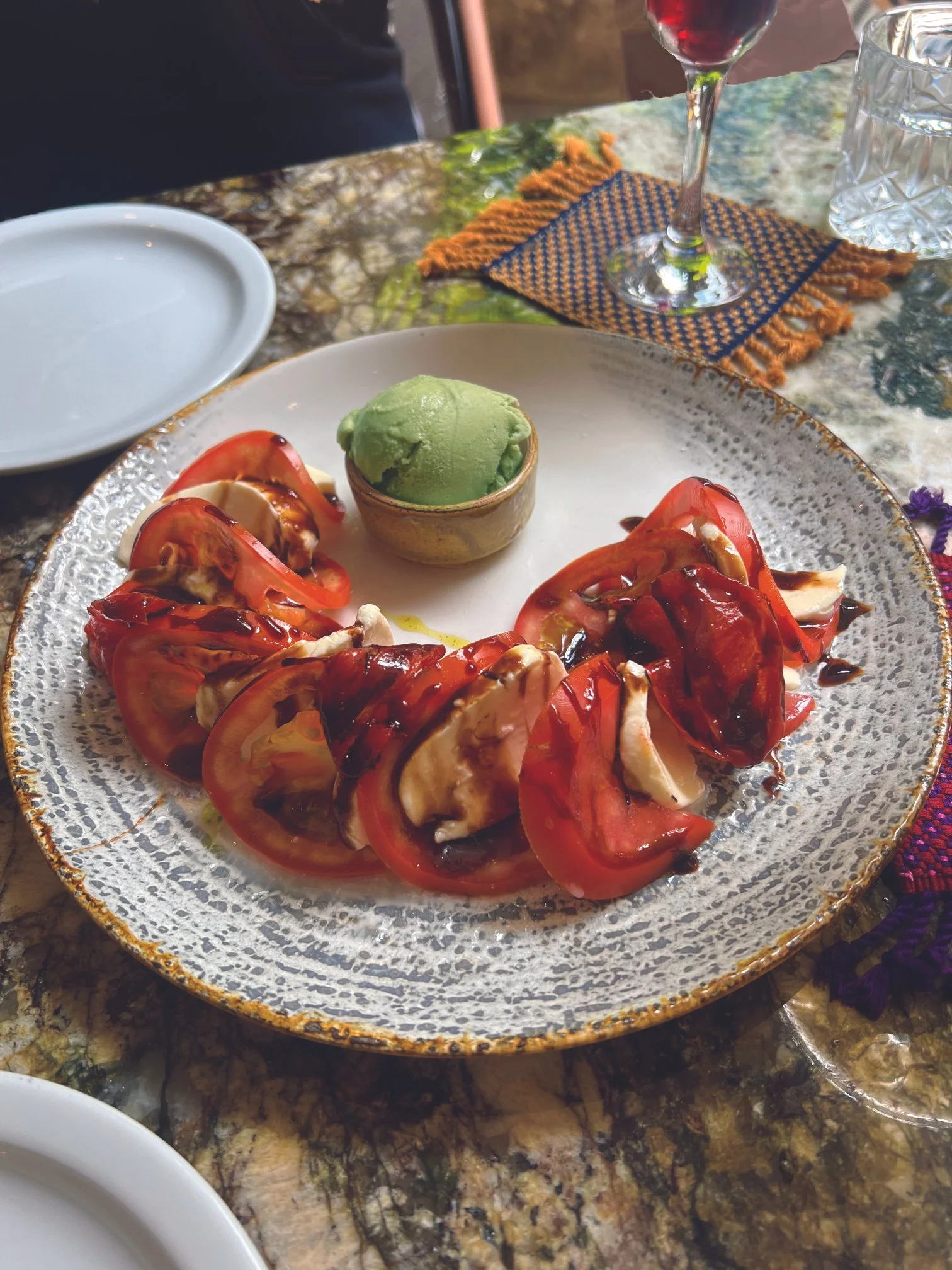 Ensalada Caprese con Helado de Albahaca ~ Caprese Salad with Basil Ice Cream