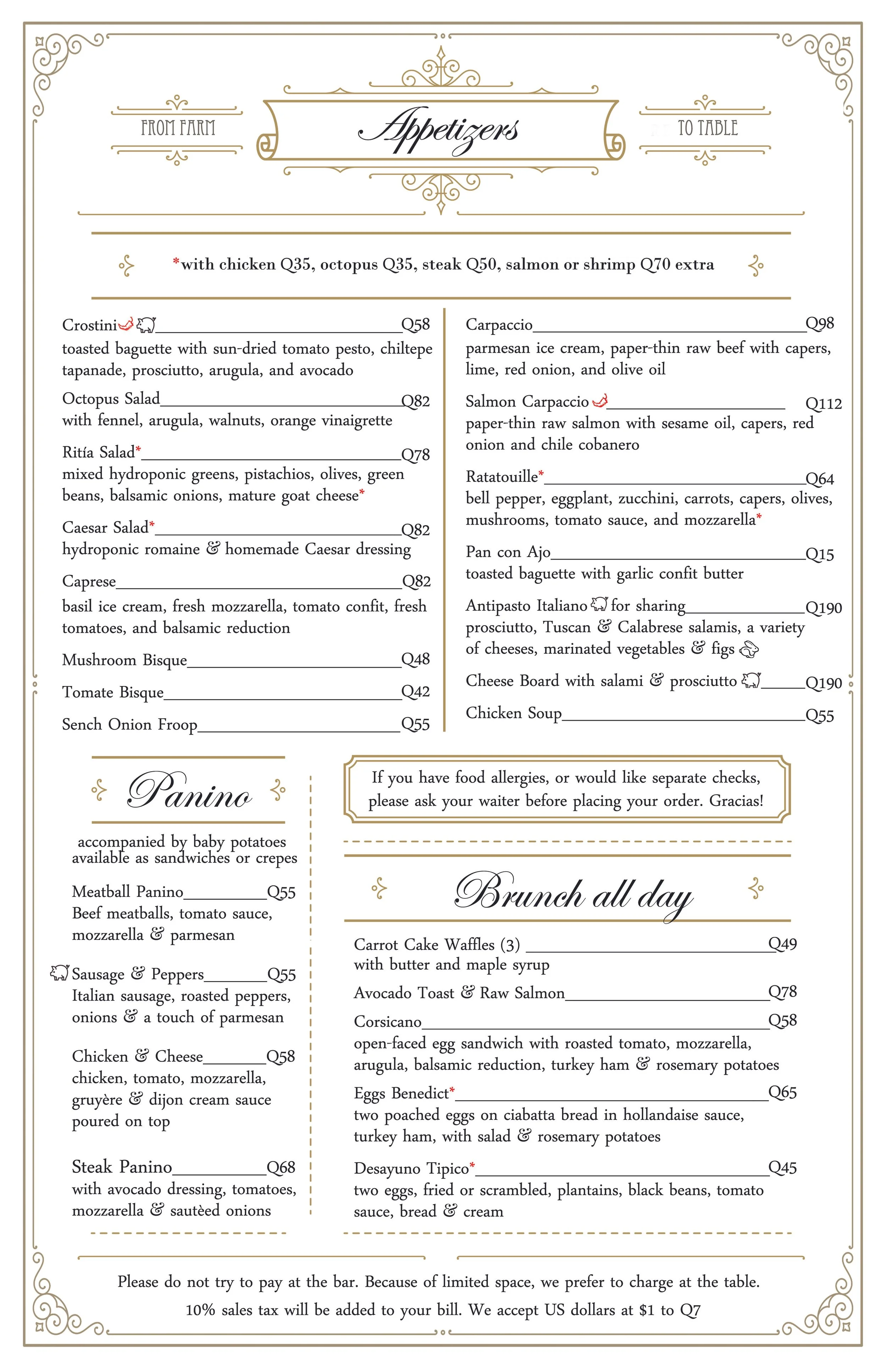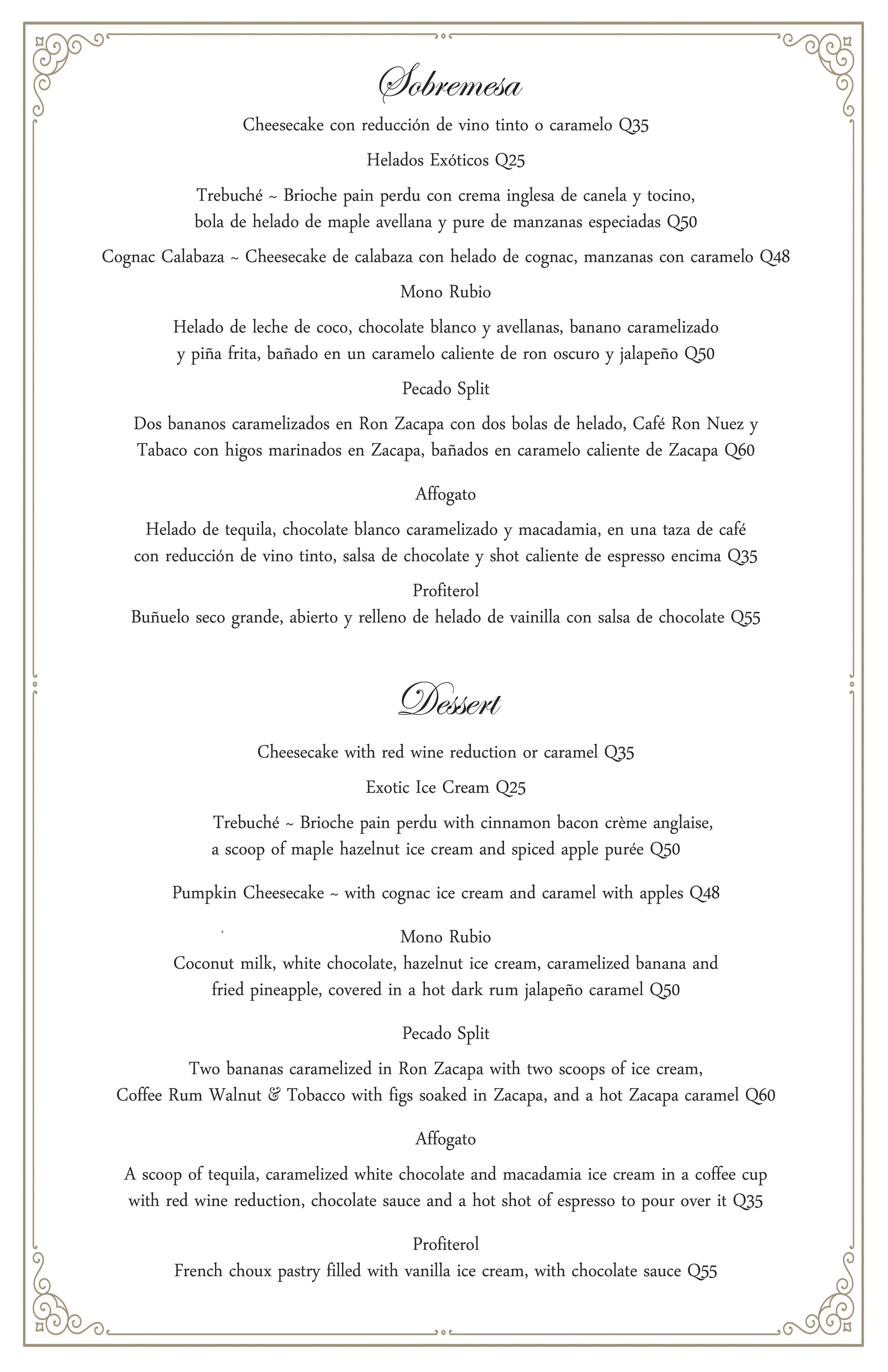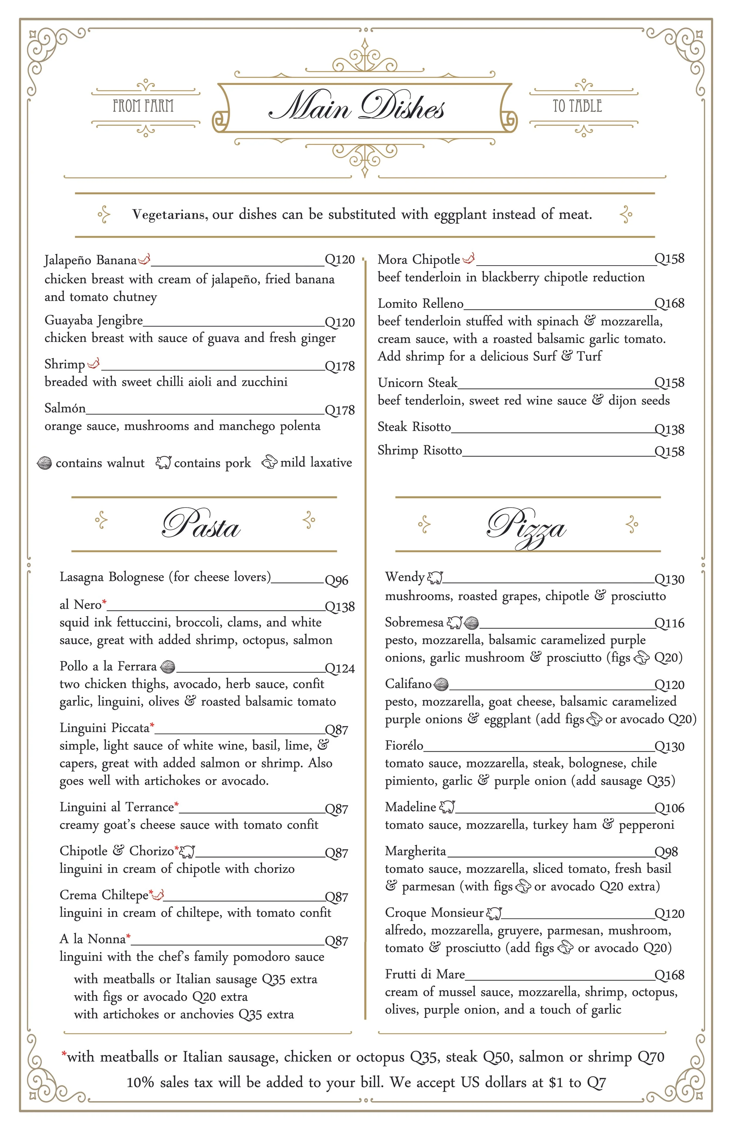 Lo que consideramos comida italiana se basa en ingredientes disponibles en una península del sur de Europa. Pero ¿qué pasaría si los grandes chefs italianos tuvieran acceso a los alimentos básicos guatemaltecos? ¿el aguacate, el jalapeño, el plátano? ¿Qué maravillas habrían evocado? En Sobremesa nos encanta experimentar con la combinación de ingredientes del Viejo Mundo y el Nuevo. ~ What we consider Italian food is based on ingredients available on a peninsula in Southern Europe. But what if great Italian chefs had access to Guatemalan staples; the avocado, jalapeño, the banana? What wonders would they have conjured up? At Sobremesa, we love to experiment with the combination of ingredients from the Old World and the New.
